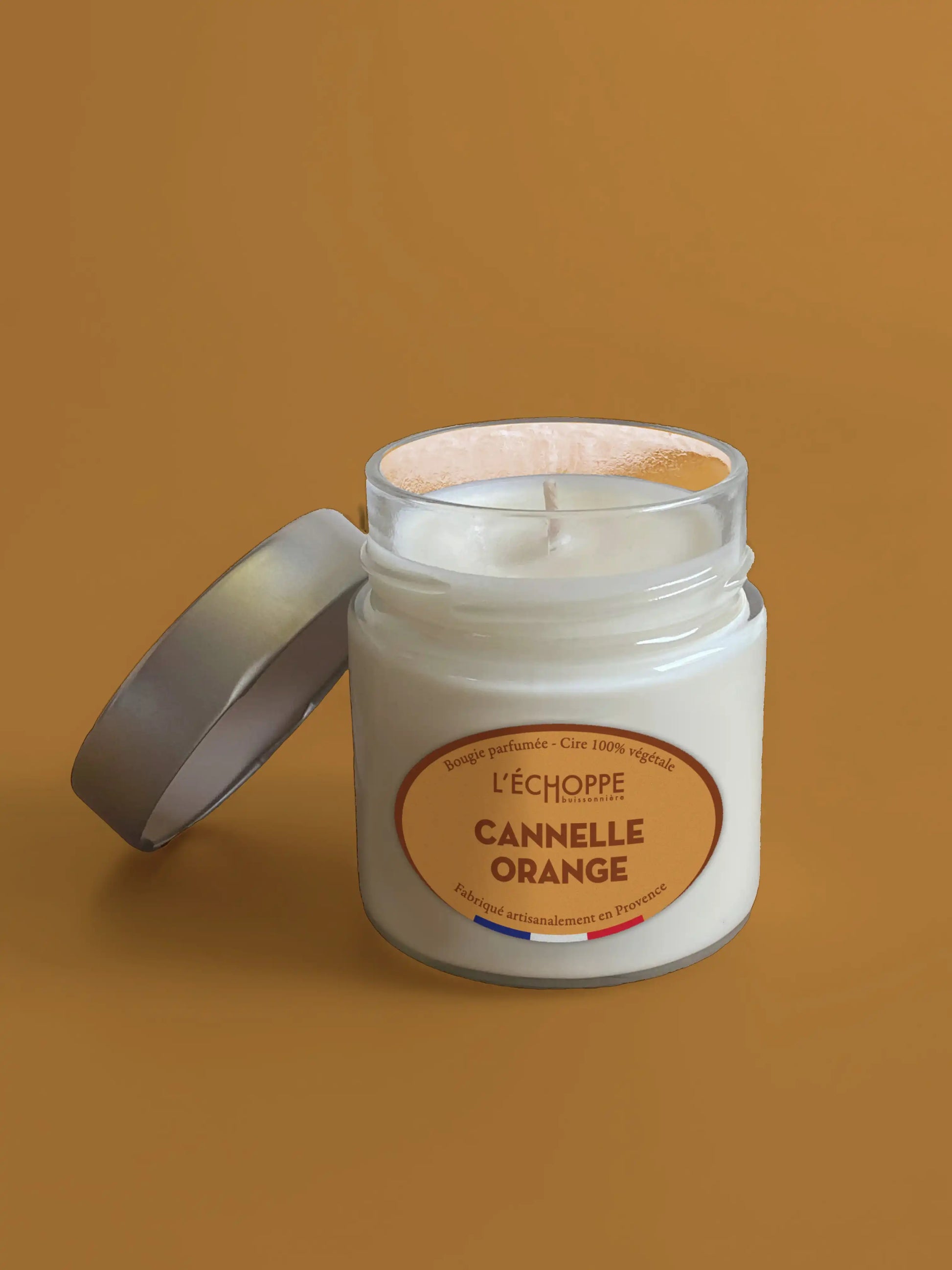 - Cire 100 % végétale (soja), mèche en coton